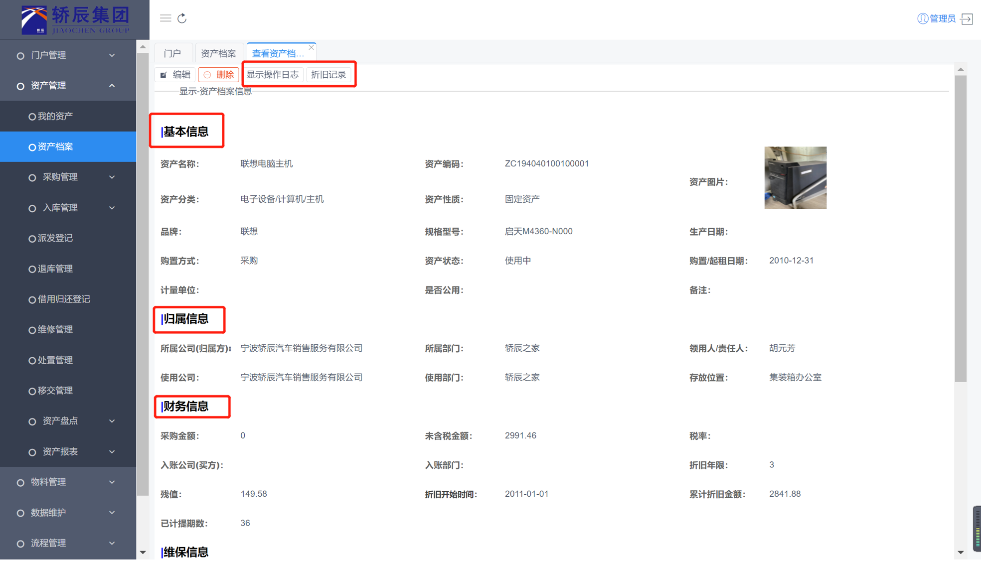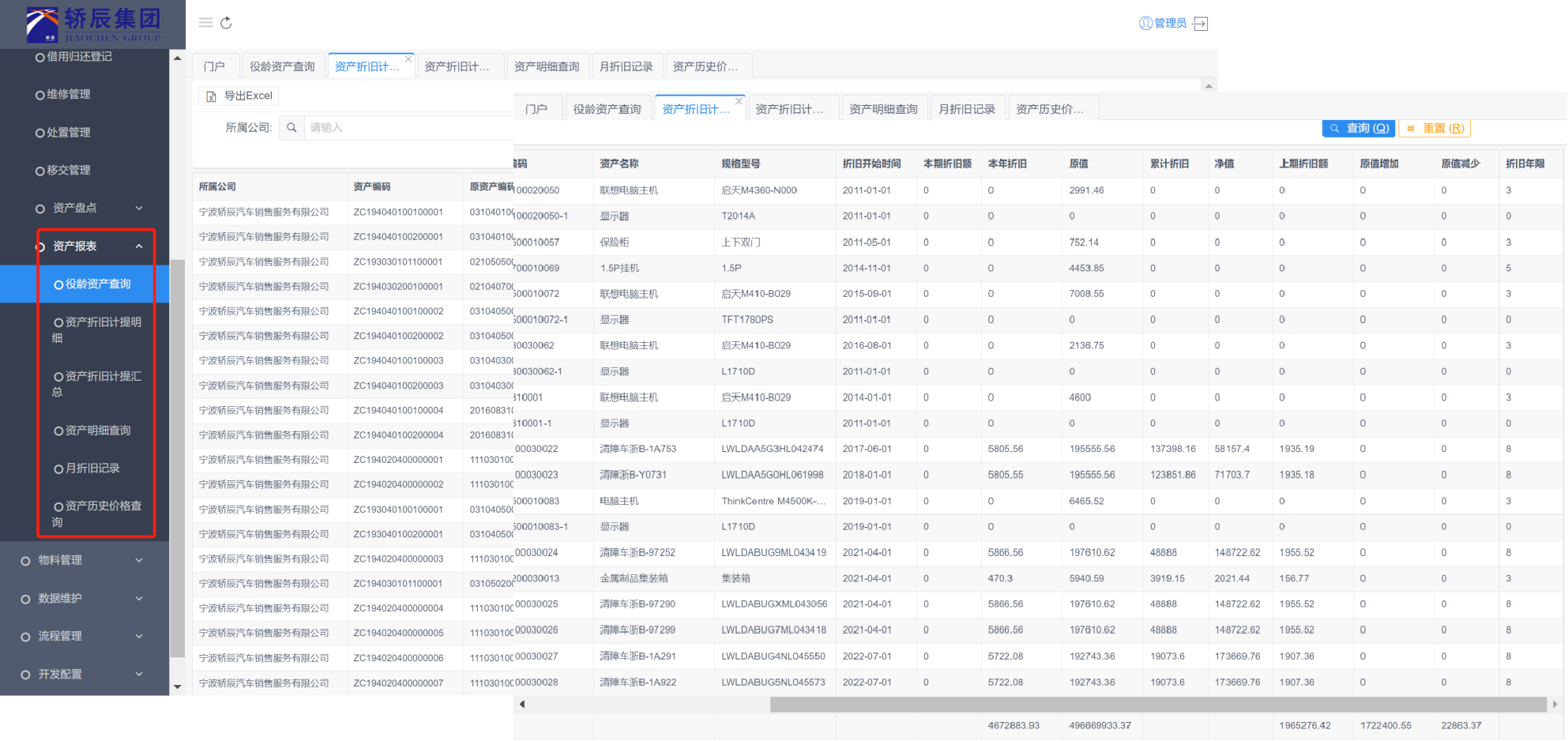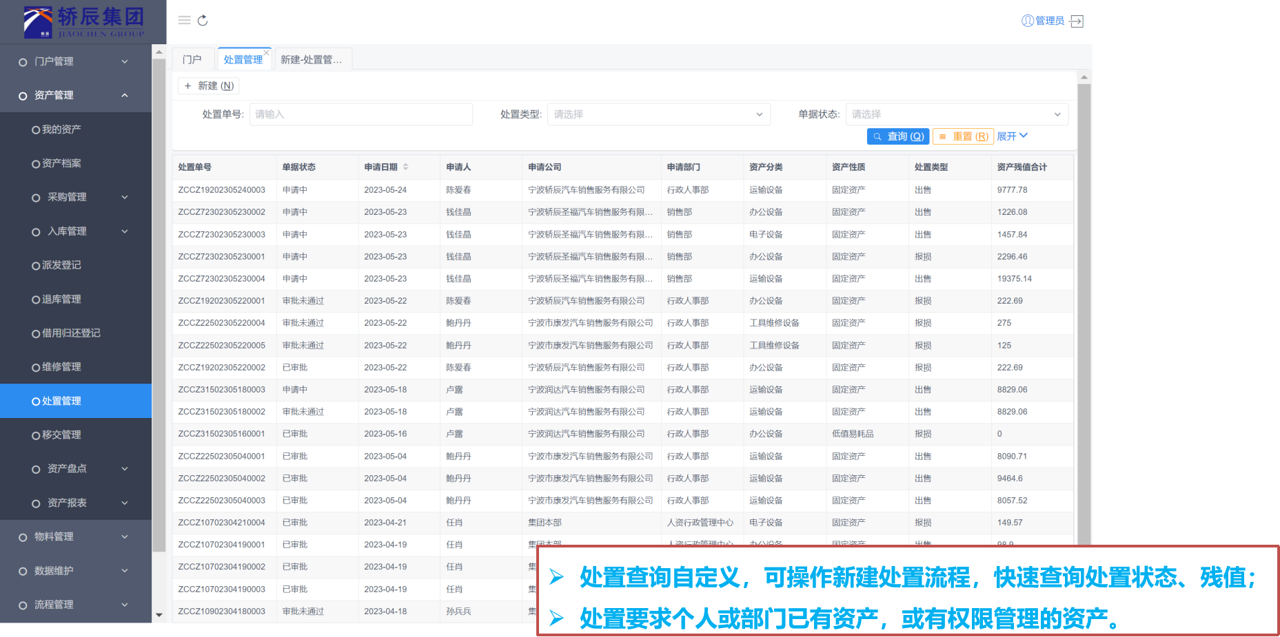 一张表就能查询到资产的所有数据,并能直接操作,对业务科室来说非常方便