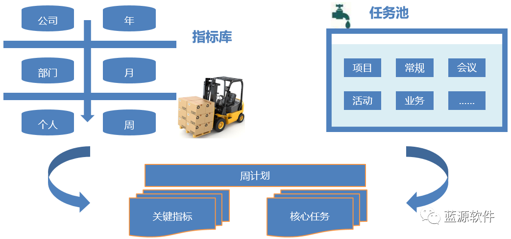 3、建立年、月、周计划,最终落地到周计划,并关联分解指标与计划任务。